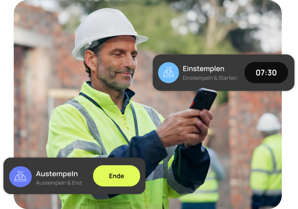 - Einstempeln per Knopfdruck: GPS wird automatisch erfasst
